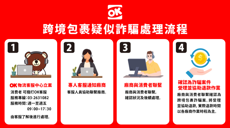 3.請於OK超商門市交寄時,妥善保存門市人員交付的憑證, 以便日後查詢。