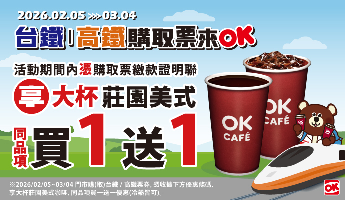 高鐵/台鐵購取票▶享大杯莊園美式買1送1