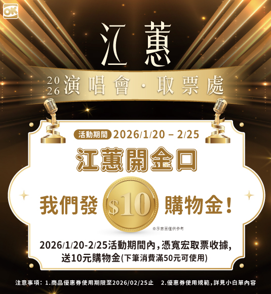 江惠演唱會取票▶享10元購物金