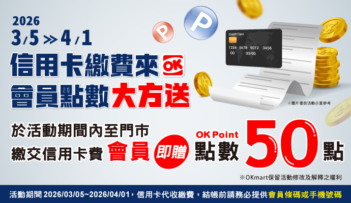 繳信用卡費可贈OK會員點數